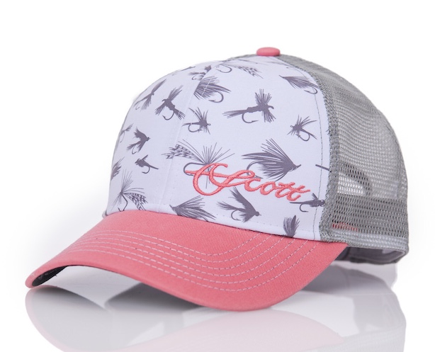 100% cotton canvas with fly variety logo and a pink Scott script on the lower left front. This grey, pink, and white trucker hat has a women’s fit and plastic snap back for an adjustable fit. Nylon mesh back with Scott joker tag on back. Black underbrim to cut out the glare.