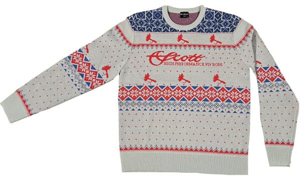 Scott winter alpine sweater with Scott logo on the front, has fly and intricate designs all around the sweater.